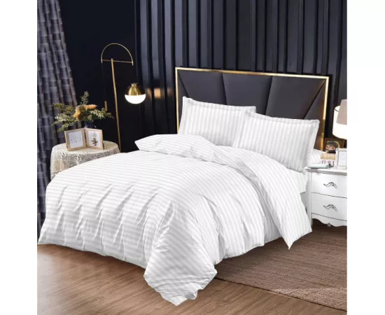 Lenjerie de Pat Dublu Bumbac Damasc 4 Piese cu Elastic, Alb - SIPRA3-16