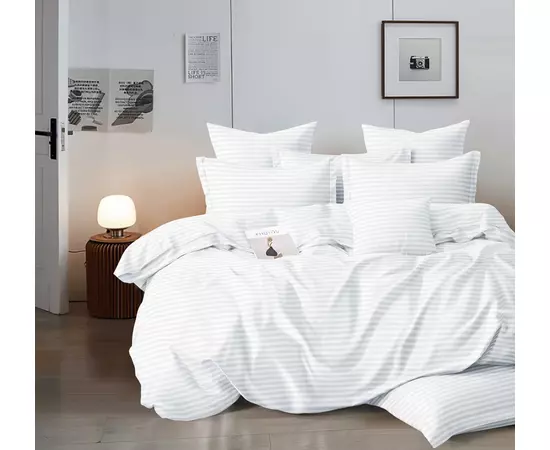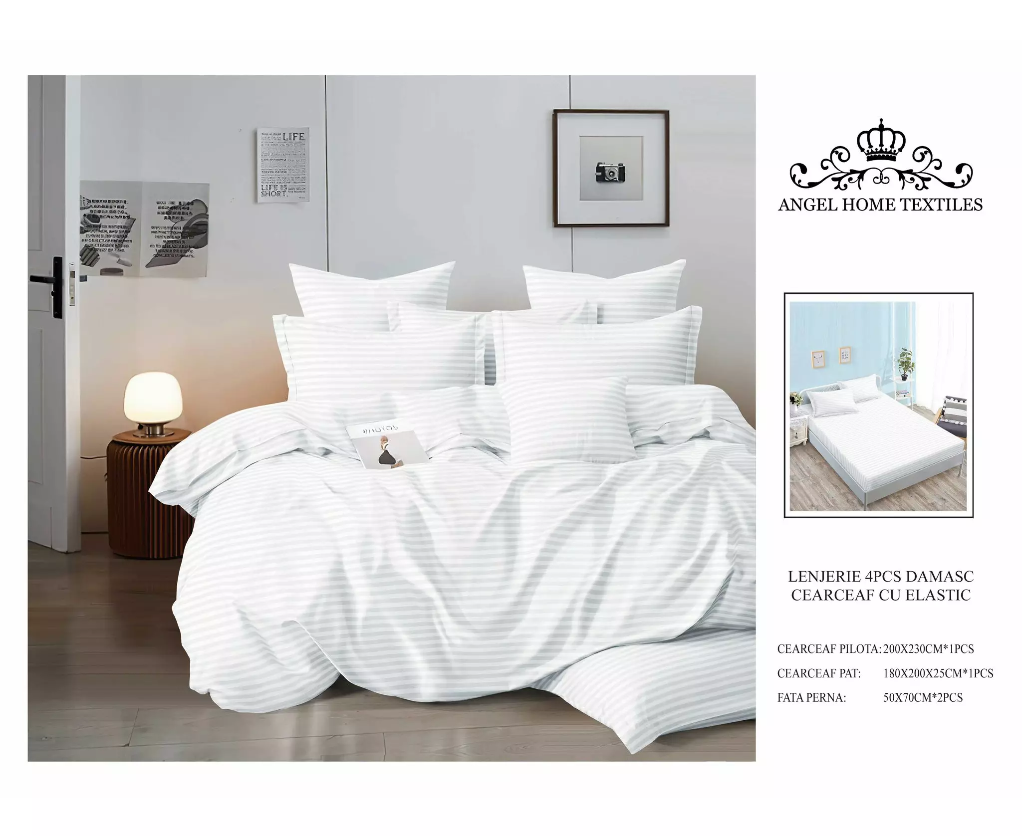 Lenjerie de Pat Dublu Bumbac Damasc 4 Piese cu Elastic, Alb - XIA175