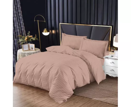 Lenjerie de Pat Dublu Bumbac Damasc 4 Piese cu Elastic, Bej - SIPRA3-13
