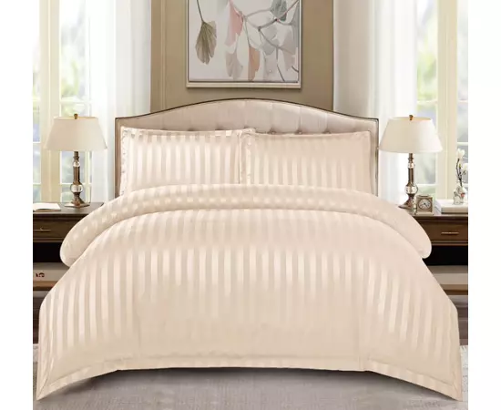 Lenjerie de Pat Dublu Bumbac Damasc 4 Piese cu Elastic, Crem-Ivoire - CPL141