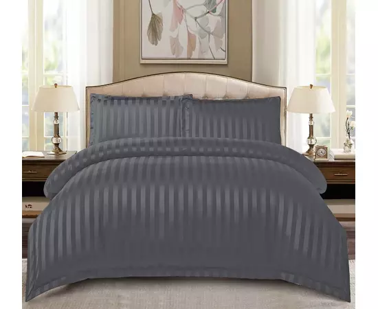 Lenjerie de Pat Dublu Bumbac Damasc 4 Piese cu Elastic, Gri - CPL142