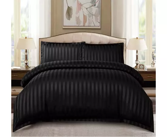 Lenjerie de Pat Dublu Bumbac Damasc 4 Piese cu Elastic, Negru- CPL143
