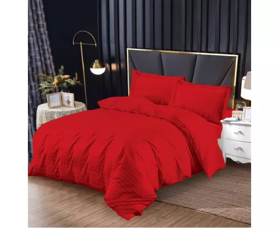 Lenjerie de Pat Dublu Bumbac Damasc 4 Piese cu Elastic, Rosu - SIPRA3-01
