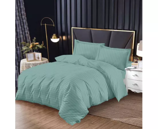 Lenjerie de Pat Dublu Bumbac Damasc 4 Piese cu Elastic, Salvie - SIPRA3-12