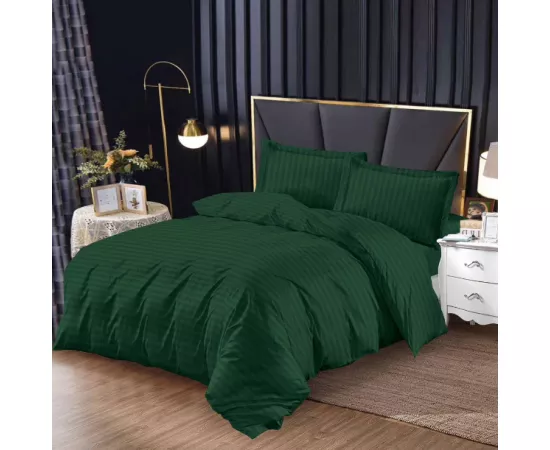 Lenjerie de Pat Dublu Bumbac Damasc 4 Piese cu Elastic, Verde Inchis - SIPRA3-06
