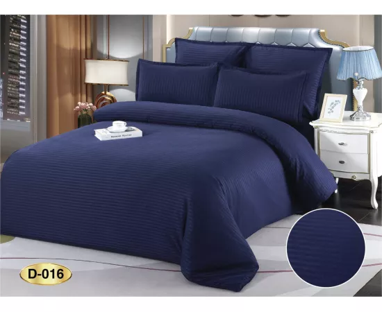 Lenjerie de Pat Dublu Bumbac Damasc 6 Piese, Bluemarin - EAT57