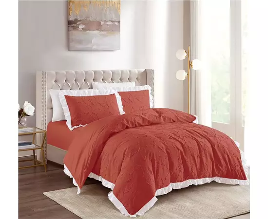 Lenjerie de Pat Dublu, Bumbac Finet, 4 Piese Cu Elastic, Caramiziu-CPL133