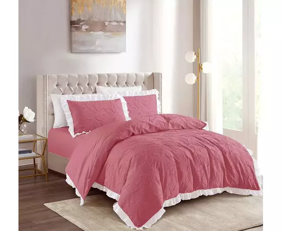 Lenjerie de Pat Dublu, Bumbac Finet, 4 Piese Cu Elastic, Roz Pudra - CPL131