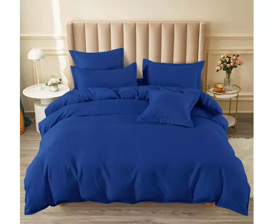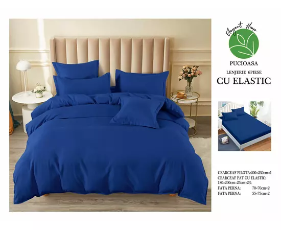 Lenjerie de pat dublu Bumbac Finet 6 Piese cu Elastic, Albastru Inchis - SIPRT189