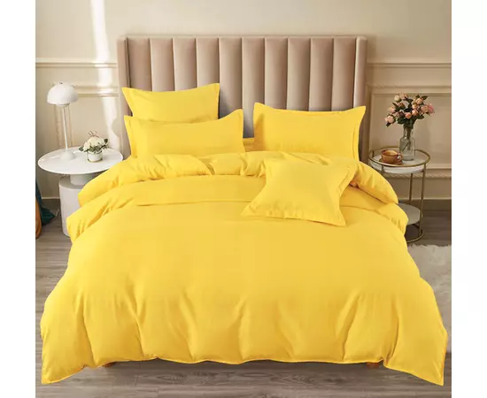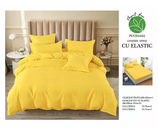 Lenjerie de pat dublu Bumbac Finet 6 Piese cu Elastic, Galben - SIPRT173