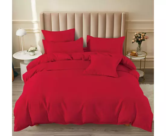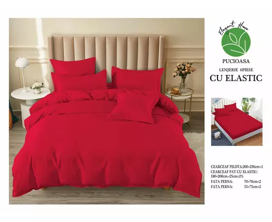 Lenjerie de pat dublu Bumbac Finet 6 Piese cu Elastic, Rosu- SIPRT175
