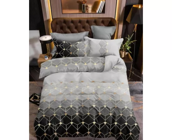 Lenjerie de Pat Dublu Bumbac FINET, 6 Piese , Model Geometric