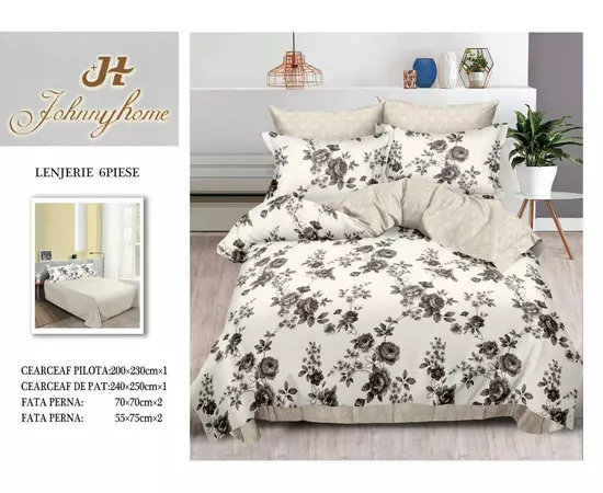 Lenjerie de pat dublu, bumbac finet, 6 piese - SIPRR60-477