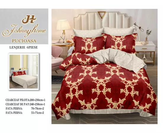 Lenjerie de pat dublu, bumbac finet, 6 piese - SIPRR60-487