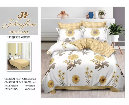 Lenjerie de pat dublu, bumbac finet, 6 piese - SIPRR60-489