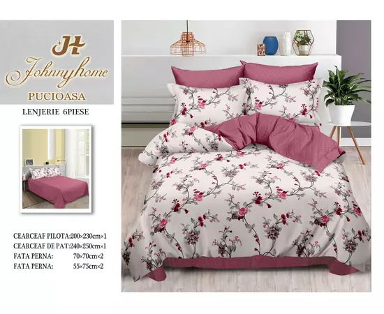 Lenjerie de pat dublu, bumbac finet, 6 piese - SIPRR60-493
