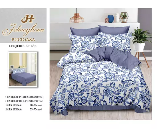 Lenjerie de Pat pentru 2 persoane cu 6 piese confectionata din Bumbac Finet.