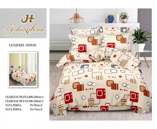 Lenjerie de pat dublu, bumbac finet, 6 piese - SIPRR60-475