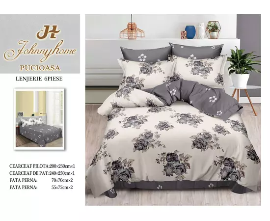 Lenjerie de pat dublu, bumbac finet, 6 piese - SIPRR60-476