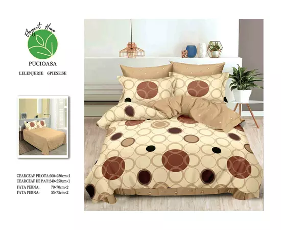 Materialul din care este confectionata lenjeria este bumbac finet, gros, de calitate superioara cu o textura fina, moale si foarte placuta la atingere.