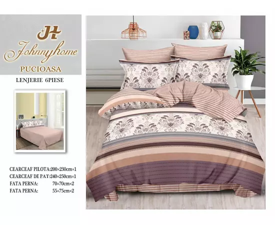Lenjerie de pat dublu, bumbac finet, 6 piese - SIPRR60-419
