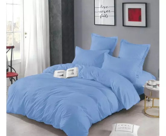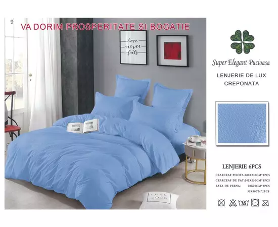Lenjerie de Pat Dublu, Bumbac Finet-Creponat, 6 Piese, Bleu-LJ1101