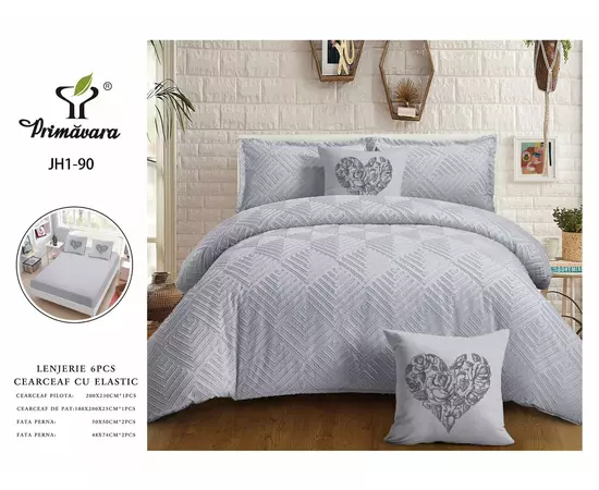 Aceasta lenjerie pentru pat dublu cu 6 piese prezinta un design modern raportat la tendintele actuale ale pietei, iar culorile rafinate reprezinta alegerea perfecta pentru esteticul reusit al dormitoritorului dumneavoastra. Transforma-ti dormitorul cu aceasta lenjerie superba!