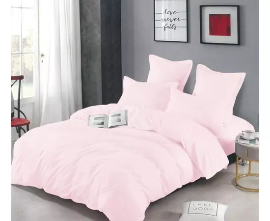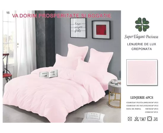 Lenjerie de Pat Dublu, Bumbac Finet-Creponat, 6 Piese, Roz Deschis-LJ1108