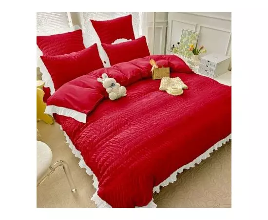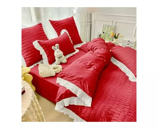 Lenjerie de Pat Dublu, Bumbac Finet-Creponat cu Margine, 6 Piese, Bordo - JO315
