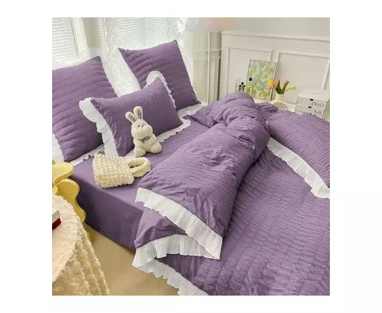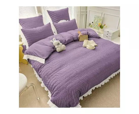 Lenjerie de Pat Dublu, Bumbac Finet-Creponat cu Margine, 6 Piese,Mov- JO317