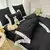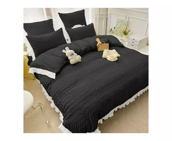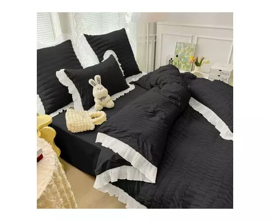 Lenjerie de Pat Dublu, Bumbac Finet-Creponat cu Margine, 6 Piese, Negru- JO318
