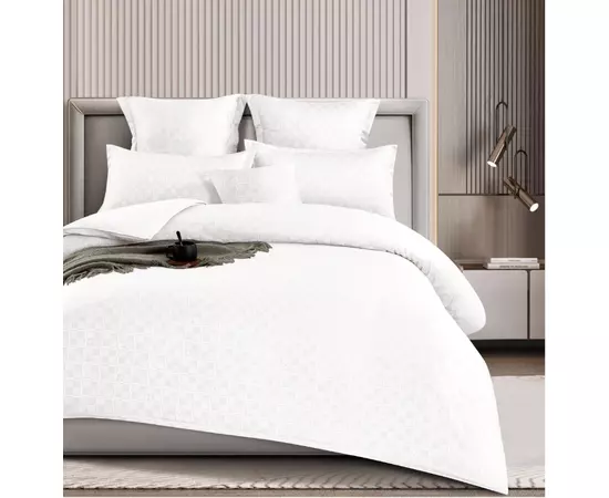 Lenjerie de pat dublu Bumbac Finet cu Carouri 6 Piese cu Elastic, Alb- SIPRT4-05
