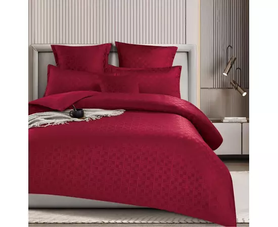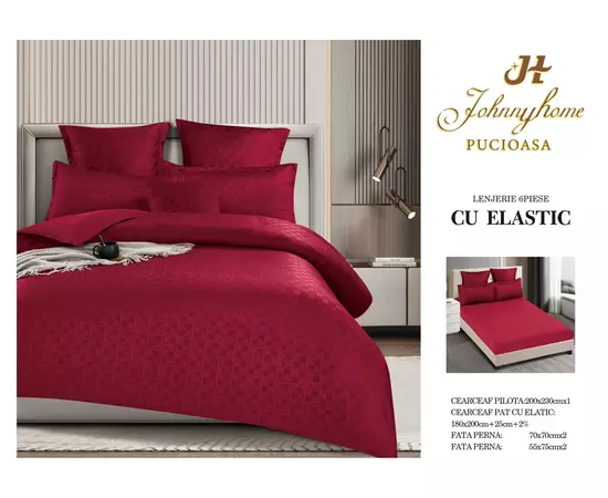 Lenjerie de pat dublu Bumbac Finet cu Carouri 6 Piese cu Elastic, Bordo - SIPRT4-15