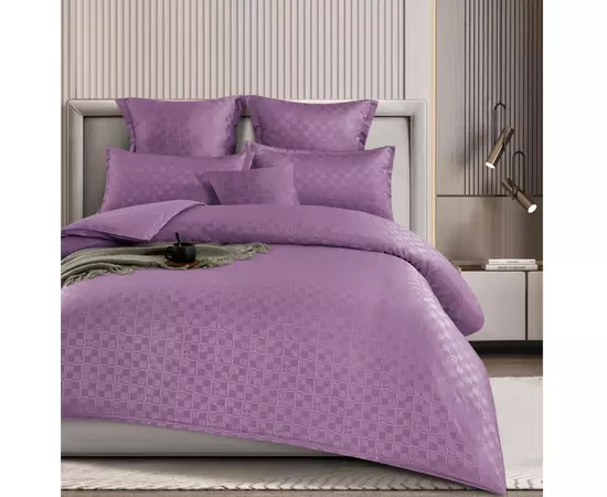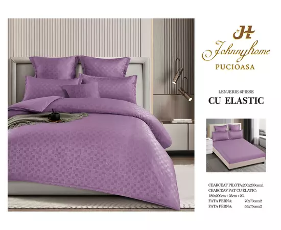 Lenjerie de pat dublu Bumbac Finet cu Carouri 6 Piese cu Elastic, Mov - SIPRT4-12