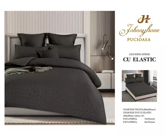 Aceasta lenjerie pentru pat dublu cu 6 piese prezinta un design modern raportat la tendintele actuale ale pietei, iar culorile rafinate reprezinta alegerea perfecta pentru esteticul reusit al dormitoritorului dumneavoastra. Transforma-ti dormitorul cu aceasta lenjerie superba!
