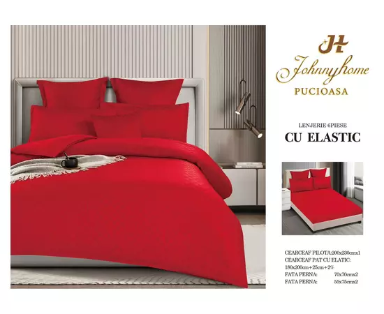 Lenjerie de pat dublu Bumbac Finet cu Carouri 6 Piese cu Elastic, Rosu- SIPRT4-02