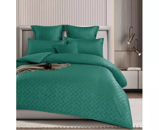Lenjerie de pat dublu Bumbac Finet cu Carouri 6 Piese cu Elastic, Verde Inchis - SIPRT4-14