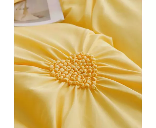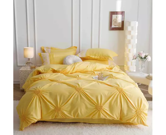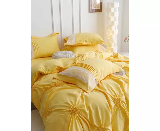 Lenjerie De Pat Dublu, Bumbac Finet, Inimi Brodate- JO113 Galben