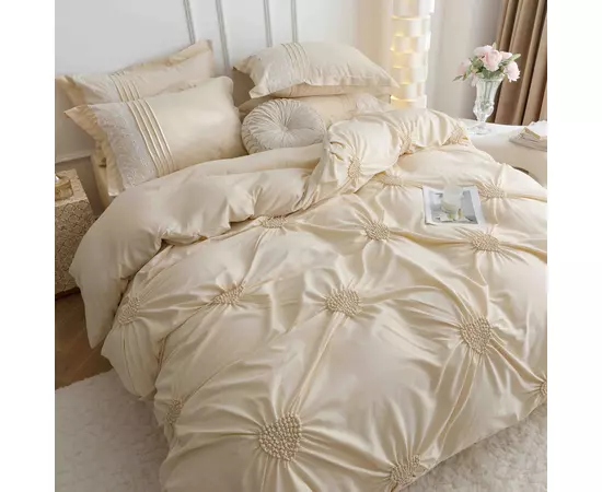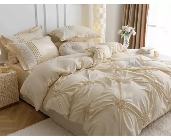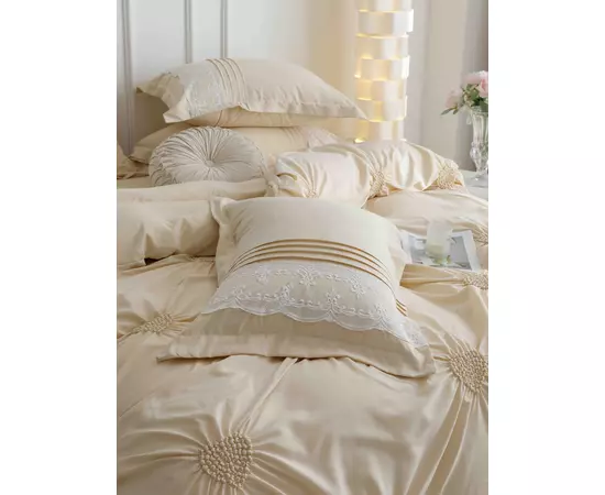 Lenjerie de Pat Finet, Pliuri Brodate, 6 pcs - JO125 Cream