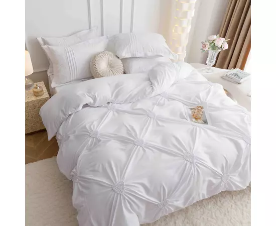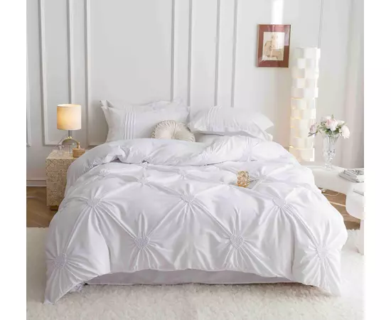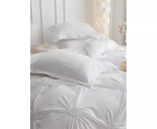 Lenjerie de Pat Finet, Pliuri Brodate, 6 pcs - JO126 Alb