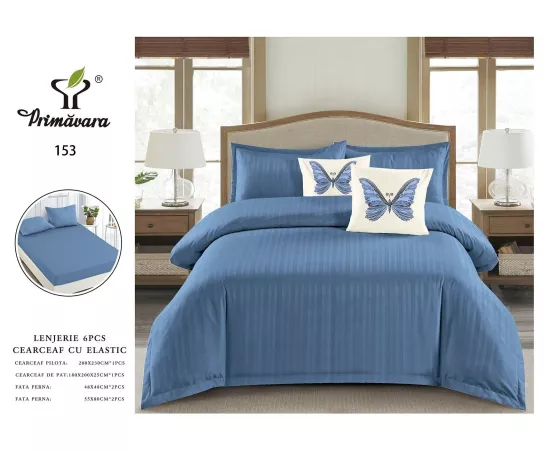 Lenjerie de Pat Dublu Cu Elastic- 100% Bumbac Damasc 6 Piese