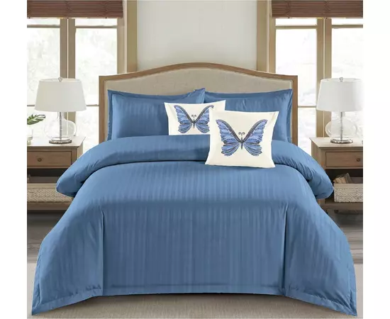 Lenjerie de Pat Dublu Cu Elastic - 100% Bumbac Damasc 6 Piese- Albastru Royal- CPL43