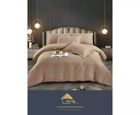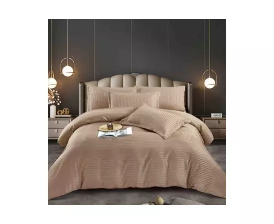 Lenjerie de Pat Dublu Cu Elastic - 100% Bumbac Damasc 6 Piese- JO171 Cappuccino