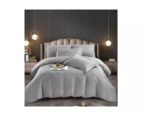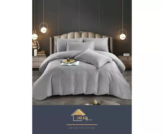 Lenjerie de Pat Dublu Cu Elastic - 100% Bumbac Damasc 6 Piese-JO165 Gri