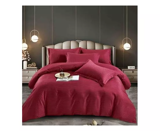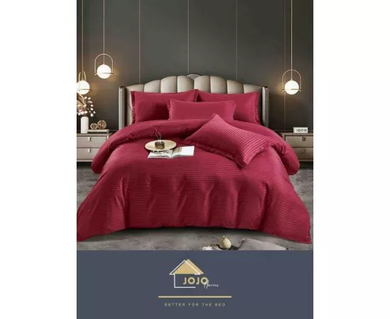 Lenjerie de Pat Dublu Cu Elastic - 100% Bumbac Damasc 6 Piese-JO176 Bordo