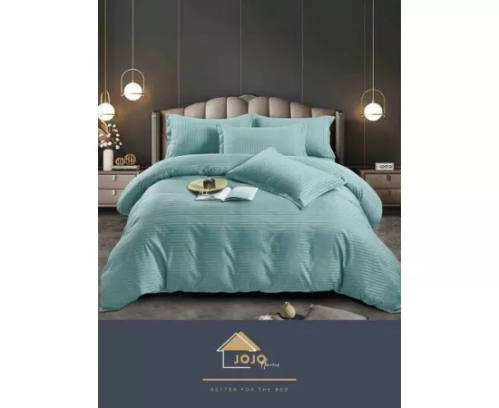 Lenjerie de Pat Dublu Cu Elastic - 100% Bumbac Damasc 6 Piese-JO177 Verde menta