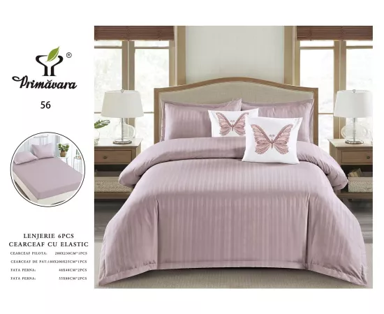 Lenjerie de Pat Dublu Cu Elastic - 100% Bumbac Damasc 6 Piese- Lavanda CPL31