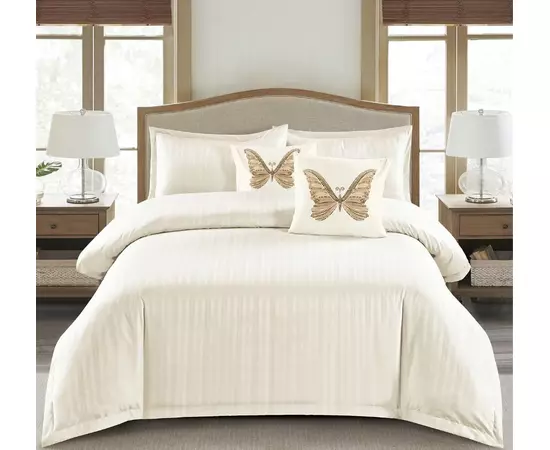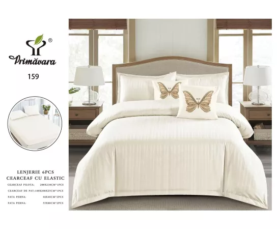 Lenjerie de Pat Dublu Cu Elastic - 100% Bumbac Damasc 6 Piese- Unt Deschis- CPL43