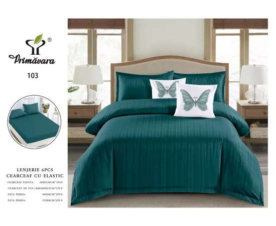 Lenjerie de Pat Dublu Cu Elastic- 100% Bumbac Damasc 6 Piese