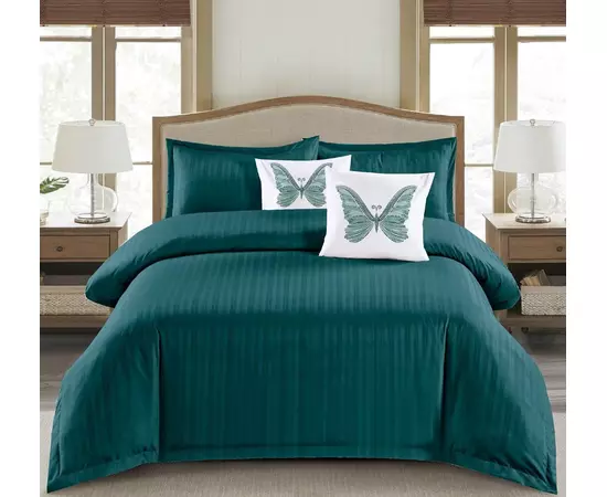 Lenjerie de Pat Dublu Cu Elastic - 100% Bumbac Damasc 6 Piese- Verde Inchis- CPL36
